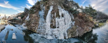 여름철 시원한 물줄기로 시민들의 발길을 모으는 홍제천 인공폭포가 올겨울 최강 한파에 자연미 넘치는 25m 높이의 거대한 빙벽으로 변신했다.