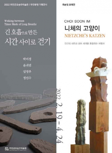 무안군오승우미술관은 올해 첫 기획전으로 무안분청 기획전 ‘긴 호흡으로 만든 시간 사이로 걷기’와 최순임 작가 초대전‘니체의 고양이’를 오는 2월 19일부터 4월 24일까지 개최한다고 밝혔다.