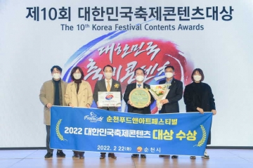 순천시(시장 허석)의 대표축제 푸드앤아트페스티벌이 사단법인 한국축제콘텐츠협회가 주최하는 제10회 대한민국 축제콘텐츠대상에서 콘텐츠부문 대상을 수상했다.