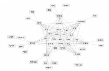 서울여행과 함께 언급된 빈도수 상위 3,000개의 연관어를 분석한 결과, 서울여행과 가장 밀접한 상위 4개의 가치로 비주얼, 분위기, 힐링, 가성비로 분석되었다.