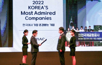 인천국제공항공사(사장 김경욱)는 2일 오전 한국능률협회컨설팅(KMAC) 주관으로 서울 신라호텔에서 열린‘2022 한국에서 가장 존경받는 기업’ 인증식에서 15년 연속 SOC 시설관리부문 1위 기업으로 선정됐다고 밝혔다.