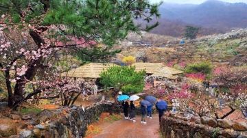 붓으로 채색한 듯 화사하게 번지는 꽃잎도 아름답지만 단아한 초가지붕, 운치 있는 정자, 푸른 대숲이 조화로운 꽃 대궐을 이루며 고향의 봄처럼 아늑하고 편안하다.