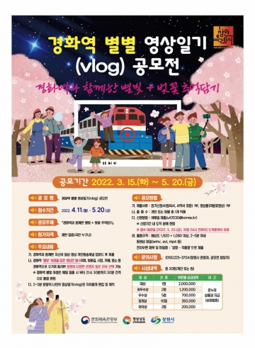 공모 주제는 ‘경화역과 함께하는 별빛·벚꽃 추억담기’로, 경화역에서 보내는 자신의 일상을 2~5분짜리 영상으로 제작하면 된다. 영상에는 경화역 별빛 야경이 반드시 포함돼야 하며 벚꽃길, 시장, 카페 등 경화역 인근 관광지도 담을 수 있다.