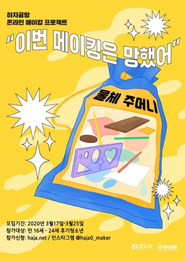 만날 수 없어도 메이킹은 가능하다. 집에서도 도전 가능하도록 청소년에게 메이킹 키트 발송해주는 프로그램 <이번 메이킹은 망했어>는 다양한 물체로 구성된 키트를 발송하여 결과가 정해져 있지 않은, 고유한 자기표현으로서 예술 참여의 기회를 제공하고 작업 결과를 SNS에 업데이트하여 공통 해시태그(#이메망)로 느슨한 연대 구축한다.