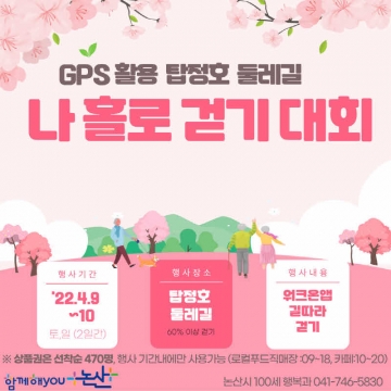논산시가 2022년 보건의 날을 맞아 시민 모두의 건강한 일상과 행복한 삶을 위해 탑정호 둘레길에서 ‘GPS 활용 나 홀로 걷기 대회’를 개최한다.