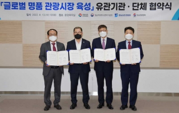 경상남도(도지사권한대행 하병필)는 13일 경남도청에서 경남관광협회(회장 윤영호), 경남상인연합회(회장 윤장국), 경남중소벤처기업청(청장 최열수)과 글로벌 명품 관광시장 육성 업무협약을 체결했다고 밝혔다.