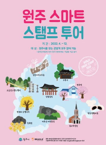 원주시는 모바일 앱을 활용한 「2022 원주 스마트 스탬프 투어」를 12월 31일까지 진행한다고 밝혔다.