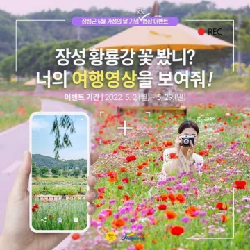 장성군이 봄꽃 가득한 5월의 황룡강을 소재로 ‘블로그‧SNS 영상 이벤트’를 추진한다. 기간은 이달 29일까지로, 누구나 참여할 수 있다.