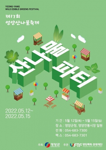 제17회 영양산나물축제가 5월 12일(목)부터 5월 15일(일)까지 4일간 영양군청, 영양전통시장 일원에서 대면축제로 개최된다.