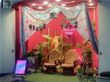 70년대의 과자 포장, 통조림 등과 80년대의 캠핑 소품들을 식물과 조화롭게 배치하여 무대를 꾸몄다.