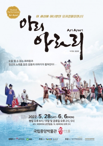 국립박물관문화재단과 재단법인 정선아리랑문화재단이 공동 기획으로 진행하는 뮤지컬 퍼포먼스 ‘아리 아라리’는 2022년 극장 ‘용’ 가족공연 세 번째 라인업이다.