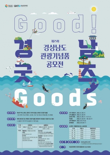 ‘GOOD! 경남 굿즈*’라는 주제로 열리는 이번 공모전은 경남의 역사, 문화, 관광지, 먹거리 등을 소재로 만들어서 대량생산 및 판매가 가능한 완제품이 관광기념품 공모 대상이다.