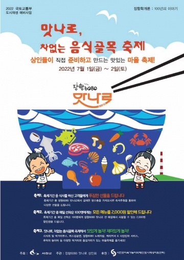 이번 축제는 도시재생 예비사업의 일환으로 진행되며, ‘장항 6080맛나로 상인회’가 중심이 되어 지난 2월부터 준비한 주민 주도의 도시재생 마을축제이다.