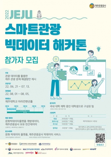 제주특별자치도와 제주관광공사(사장 고은숙)는 오는 8월 1일부터 8월 5일까지 제주대학교 아라컨벤션홀에서 관광데이터를 활용한 제주 관광 문제 해결 아이디어 발굴과 데이터 전문인력을 양성하고자 ‘2022 제주 스마트관광 빅데이터 해커톤’을 개최한다고 4일 밝혔다.