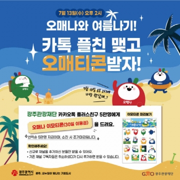 이번 행사는 휴가철을 맞아 광주관광재단이 진행하는 ‘광주, 여름여행’ 이벤트의 일환으로, 오는 13일 오후 2시부터 ‘오매나와 여름나기’ 모션 이모티콘 16종을 전국민 대상 선착순 5만명에게 무료 배포한다.