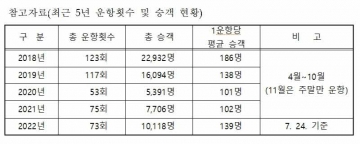 코로나19의 확산으로 인해 지난 2년간 매해 1만명을 넘지 못하던 고래바다 여행선은 최고 성수기인 8월 이전에 승객 1만명을 돌파하여 코로나19 이전인 2019년(16,094명) 승객을 넘어설 것으로 예상하고 있다.