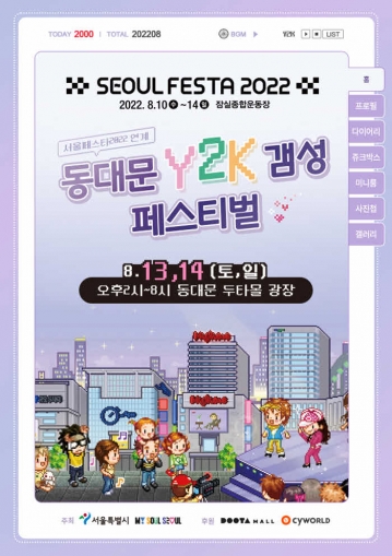 오는 8월 13일~14일, 2일간 오후 2시부터 8시까지 서울 중구 동대문 패션타운 관광특구 내 두산타워빌딩(두타몰) 앞 광장에서 「동대문 Y2K 갬성 페스티벌」이 열린다. 이 행사는 서울페스타 2022(8.10~14. 잠실종합운동장)와 연계하여 전통적 관광특구이자 패션 중심상권인 동대문 일대에서 개최된다.