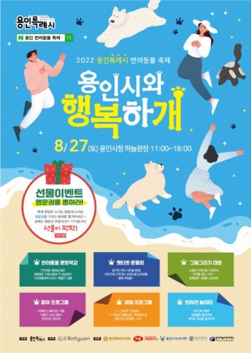 용인특례시는 오는 27일 오전 11시부터 시청 하늘광장에서 반려동물축제인 '용인시와 행복하개'를 개최한다.