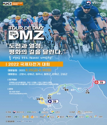 행정언전부와 인천광역시, 경기도, 강원도가 공동 주최하고 대한자전거연맹이 주관하는 평화 염원 Tour de DMZ 2022 국제자전거 대회가 오는 26일부터 30일가지 5일간 개최된다.