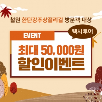 한탄강주상절리길 방문객은 로이쿠 앱을 통해 이벤트에 참여하면 최대 5만원의 할인 혜택을 받을 수 있다. 택시투어를 5시간 이용하는 경우 할인 전 금액 10만원에서 5만원 할인 혜택을 받아 절반 가격에 서비스를 이용할 수 있다.