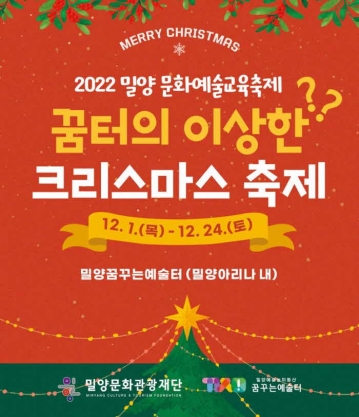 (재)밀양문화관광재단(이사장 박일호, 이하 재단)은 오는 12월 1일부터 24일까지 밀양아리나 내 ‘밀양 꿈꾸는 예술터’ 일대에서 2022 밀양 문화예술교육축제 ‘꿈터의 이상한? 크리스마스 축제’를 개최한다고 전했다.
