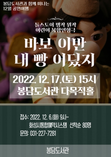◇ 화성시 봉담도서관, 인형극 ‘바보 이반의 내 빵 어딨지?’ 공연