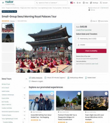 서울형 인바운드 여행 활성화 지원사업을 통해 판매 수수료를 지원받은 ㈜서울앤투어 OTA플랫폼 Viator