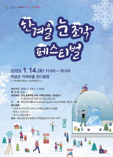 곡성군(이상철 군수)이 오는 14일에 곡성 섬진강 기차마을 잔디광장에서 ‘한겨울 눈 조각 페스티벌’을 개최한다고 밝혔다.