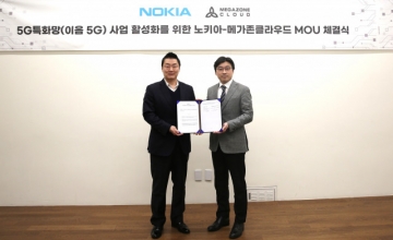 클라우드 선도 기업 메가존클라우드(대표 이주완)가 통신 장비 및 솔루션 전문 기업 노키아와 5G 특화망(이음5G) 활성화를 위한 전략적 업무 협약을 체결했다고 21일 밝혔다. 이음5G는 국내 5G 특화망의 새 이름으로, 비통신 기업이 지역·건물 단위로 사용할 수 있는 기업용 5G 주파수다.