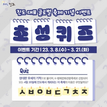 진도군이 ‘진도 신비의 바닷길 축제’ SNS 초성 퀴즈 이벤트를 실시한다.
