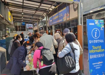 서귀포시(시장 이종우)는 지난 19일 승객 및 승무원 약 2,500명을 승선한 크루즈 ‘다이아몬드 프린세스’호가 강정크루즈 터미널항에 입항함에 따라 크루즈 관광객들을 대상으로 서귀포매일올레시장에서 임시 관광안내소를 운영하였다.