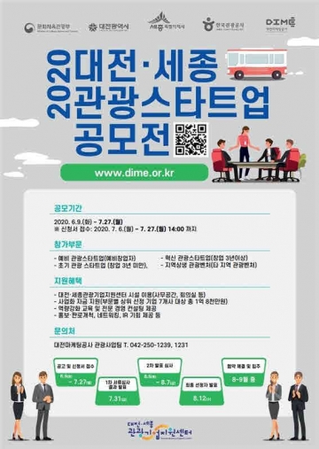 문화체육관광부와 한국관광공사의 지원을 받아 대전시‧세종시가 공동주최하는 이번 공모전은 대전마케팅공사가 주관하며, (예비)창업자들을 대상으로 창의적이고 지속가능한 사업아이템을 가진 관광기업 발굴과 육성을 위해 진행된다.