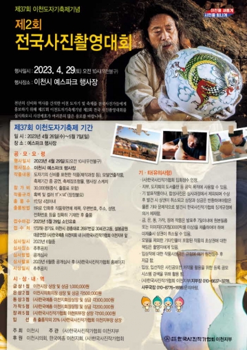 (사)한국사진작가협회 이천지부는 이천 도자기축제의 위상을 널리 알리고, 축제 홍보를 위하여 제37회 이천도자기축제 기념, 제2회 전국 사진촬영대회를 개최한다고 밝혔다.