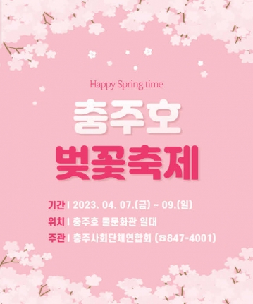 충주사회단체연합회가 주관하는 올해 행사는 충주호의 아름다운 벚꽃 아래 각종 공연 및 체험‧전시행사로 방문객을 맞이할 예정이다.