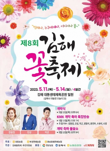 김해 꽃 축제 추진위원회(위원장 정창호)가 주관하고 김해시에서 후원하는「제8회 김해 꽃 축제」가 오는 5월 11일부터 5월 14일까지 4일간 김해시 대동생태체육공원(대동면 조눌리 33번지 일원)에서 개최될 예정이다.