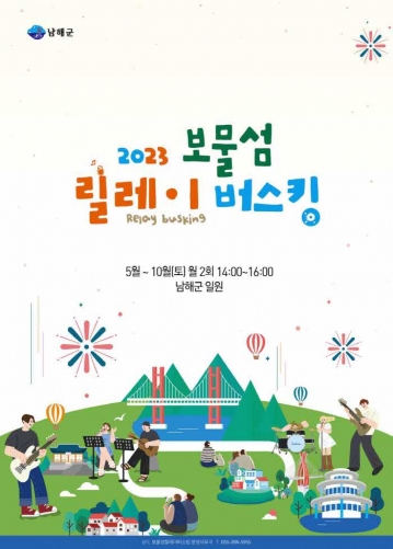 남해군은 5월부터 10월까지 주요 관광 명소에서 ‘2023 보물섬 릴레이 버스킹’을 추진한다고 밝혔다.