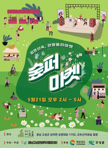 고성군(군수 이상근)이 5월 21일에 제1회 숲퍼마켓(깊은 산 속, 관광 플리마켓)을 고성군 상리면 오두산 치유숲에서 개최한다.