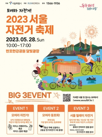 어린이부터 어르신까지 자전거를 사랑하는 서울시민이라면 누구나 참여하고 즐길 수 있는 서울의 대표 자전거 축제 “2023 서울 자전거 축제”가 5월 28일 “모여라 자전거!” 슬로건에 맞춰 반포 한강공원을 무대로 개최된다.