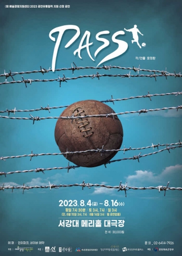 연극 <PASS>는 1946년 3월, 해방공간 속 경평대항축구전을 소재로 역사 뒤편에 숨겨진 청춘들의 꿈과 희망, 그리고 이루어질 수 없는 사랑 이야기를 담은 공연이다. 축구를 소재로 역동적인 무대를 연출하였고, 90분의 러닝타임 동안 약 20명의 배우들은 쉴 새 없이 움직이고 노래하며 터질 듯한 에너지로 관객들을 사로잡았다. 조금은 다른 남과 북의 춤과 노래, 민요 등을 현대적으로 재창작하고, 만해 한용운의 서정적인 시에 감성적인 멜로디를 더하여 깊은 울림을 만들어냈다. 작년 초연 이후 열렬한 반응으로 한국판 로미오와 줄리엣이라는 평을 받았다.