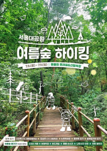 서울대공원은 무덥고 습한 장마철, 시민들의 불쾌지수를 낮추기 위해 피톤치드 가득한 여름 숲 걷기 행사인 ‘서울대공원 여름숲 하이킹’을 오는 8일(토)부터 9일(일)까지 이틀간 개최한다.