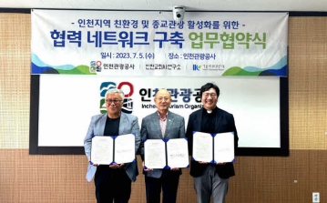 인천관광공사(사장 백현, 이하 공사)는 5일 공사 디지털회의실에서 인천교회사연구소(소장 장동훈), 가톨릭환경연대(선임대표 최진형)와 ‘인천지역 친환경 및 종교관광 활성화’를 위한 다자간 업무협약을 체결했다고 밝혔다.