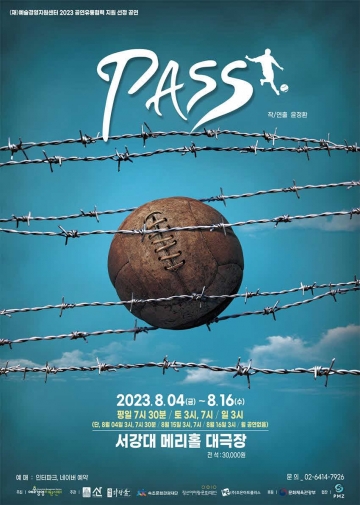 연극 <패스(PASS)>는 1946년 해방 직후 ‘경평대항축구전’을 모티브로 분단으로 미완이 될 수밖에 없었던 남•북한 청춘들의 열정과 사랑 이야기의 서사가 돋보이는 작품이다.