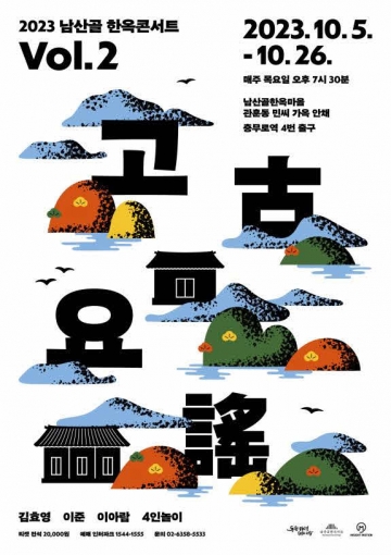서울시 남산골한옥마을(중구 퇴계로34길 28)은 10월 5일(목)부터 10월 26일(목)까지 매주 목요일 저녁 7시 30분, ‘관훈동 민씨(閔氏) 가옥’에서 2023 남산골 한옥콘서트 ‘고요(古謠) Vol.2’를 개최한다.