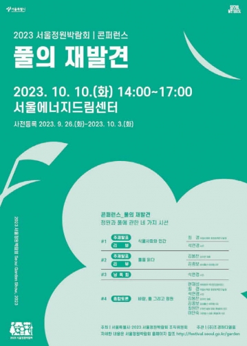서울특별시와 서울정원박람회 조직위원회가 주최하고 조경하다 열음이 주관하는 ‘2023 서울정원박람회’ 콘퍼런스가 10월 10일 서울에너지드림센터 3층 다목적실(서울 마포구 증산로 14)에서 개최된다.
