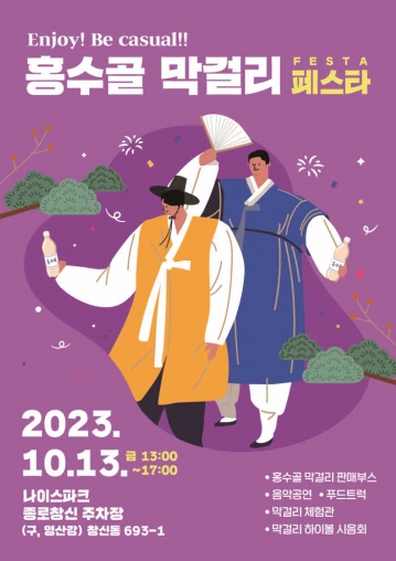 10월 13일(금) ‘Enjoy! Be casual!!’이라는 슬로건 아래 창신동 초입에서 열리는 ‘흥, 인 창신 시즌2 : 홍수골 막걸리 FESTA’는 창신동 상권 이용 촉진의 일환으로 먹거리와 볼거리를 제공하는 축제를 통해 주민과 상인이 즐겁게 상생하며 지역상권을 활성화할 수 있는 기회를 마련하고자 기획됐다.