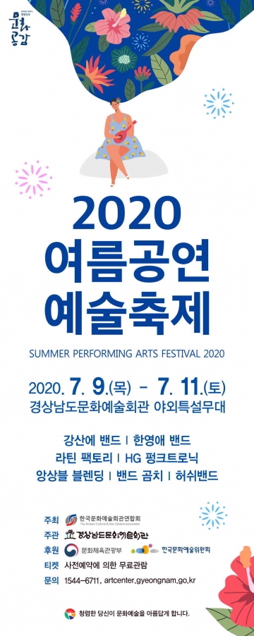 한편, 이번 ‘2020 여름공연예술축제’는 「문예회관과 함께하는 방방곡곡 문화공감」사업의 일환으로, 사업비의 일부를 문예진흥기금으로 지원 받아 진행되는 사업이다. 한국문화예술회관연합회과 주최하고, 경상남도문화예술회관이 주관하며, 문화체육관광부와 한국문화예술위원회가 후원한다.