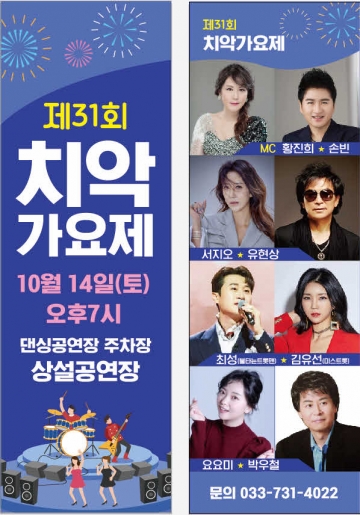 (사)한국연예예술인협회 원주지부는 오는 14일 오후 7시 댄싱공연장 주차장 상설공연장에서 ‘제 31회 치악가요제’를 개최한다