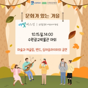 수원광교박물관은 15일 오후2시 야외무대에서 문화가 있는 가을 ‘새빛 버스킹(거리공연)’을 개최한다.
