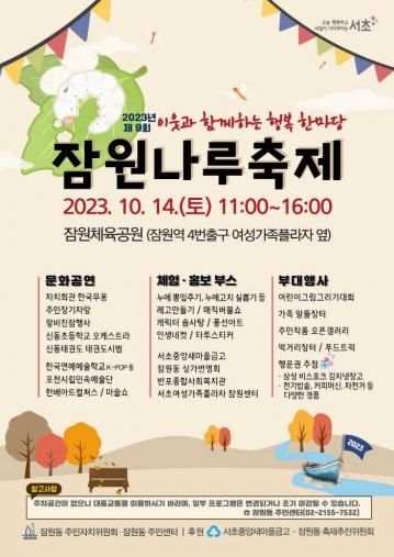 이번 축제는 서초구와 잠원동주민자치위원회(위원장 신영희)에서 주관한다.