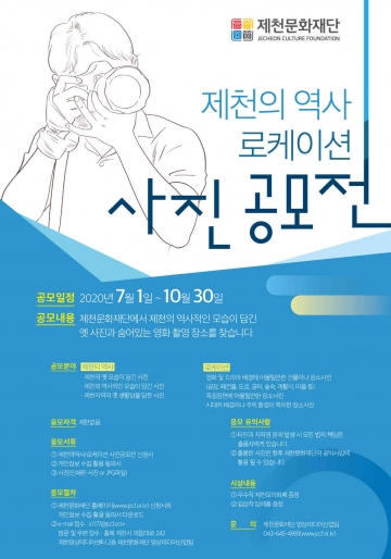 (재)제천문화재단은 제천의 옛 사진 자료수집과 영화·드라마 촬영지 발굴을 위해 지난 1일부터 ‘제천의 역사/로케이션 사진공모전’을 개최하고 작품을 접수 중이다.